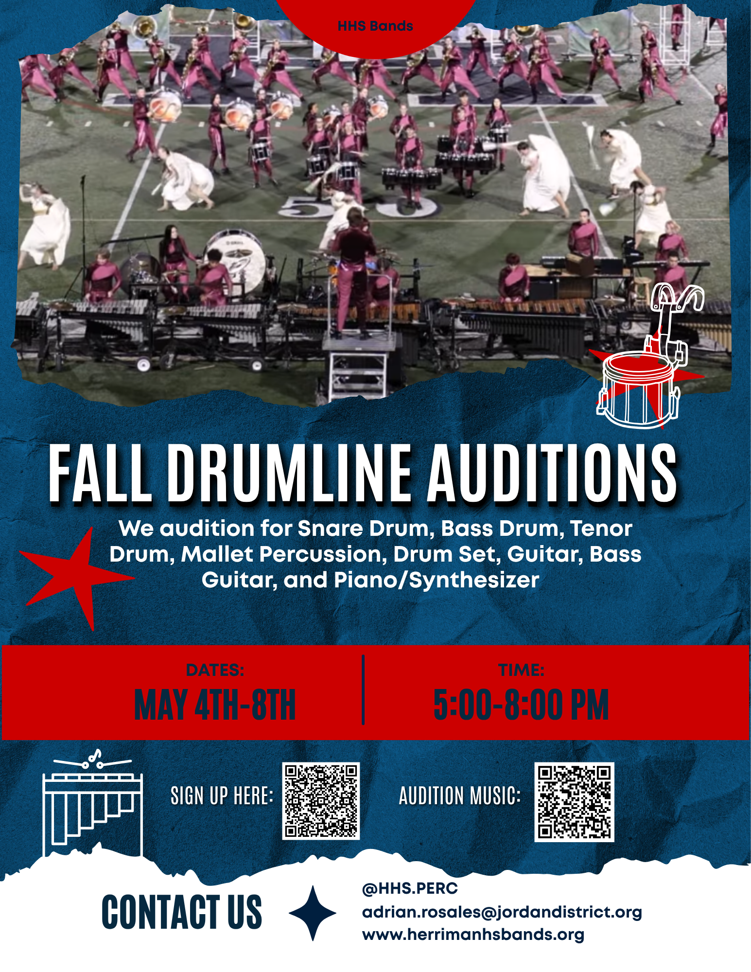Marching Percussion Audition Packets TENOR PACKET TENOR PACKET BASS DRUM PACKET BASS DRUM PACKET SNARE PACKET SNARE PACKET MALLET PACKET MALLET PACKET Join Herriman Marching Percussion! Sign Up Sign Up